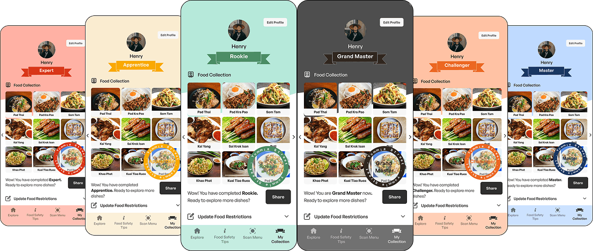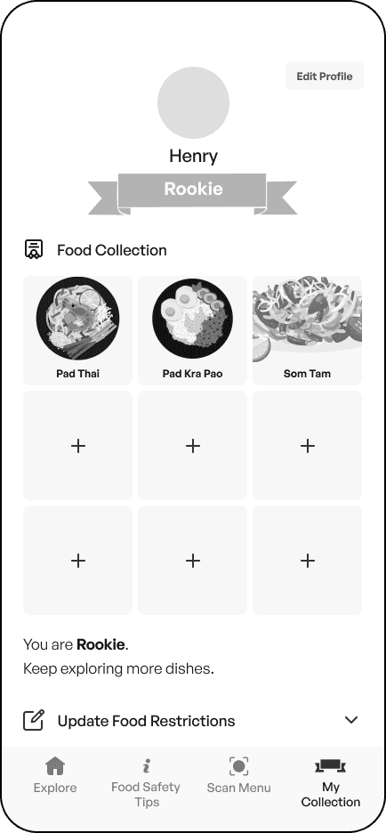 A mobile app that helps Gen-Z backpackers explore authentic Thai street food without the anxiety of unknown ingredients, language barriers, or blowing their budget. Real food, real flavors, real confidence.