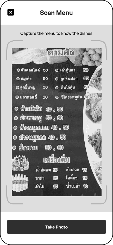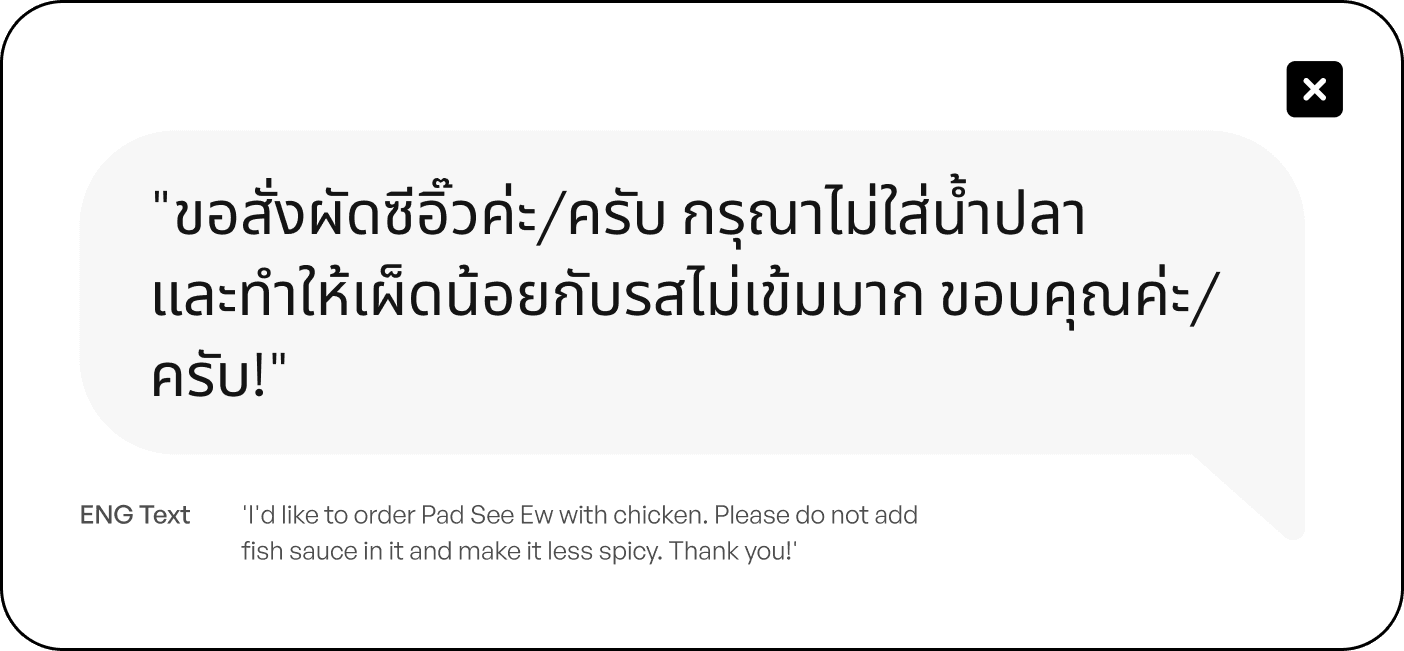 When a traveler is ready to order, their request appears in both Thai and English, giving them a chance to review before they hand it over, and giving the vendor a clear, accurate order to read. No miming, no mistranslation, no ending up with something completely different.
